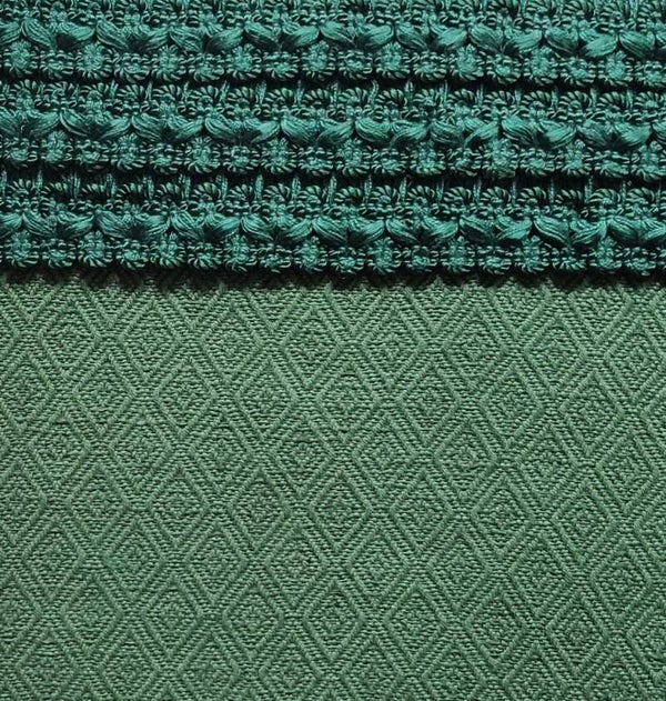 Soletta: venti o più strati di stoffa di fibre naturali, cotone e lino, trapuntata con filo di canapa, trattata con finitura impermeabilizzante e resistente all’usura. Bordatura del contorno con spago di canapa o cotone ritorto.